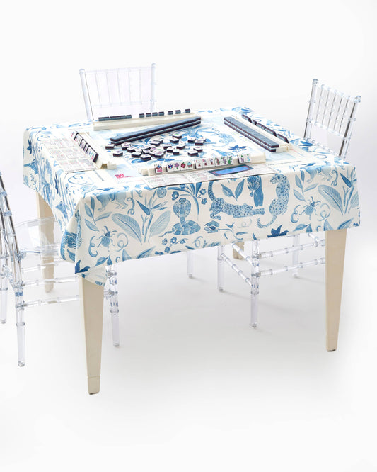 Blue Watercolor Instructional Mahjong Tablecloth